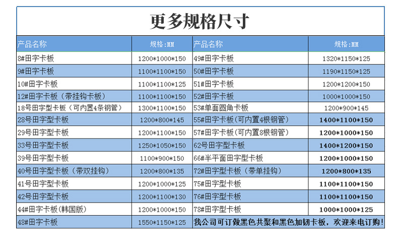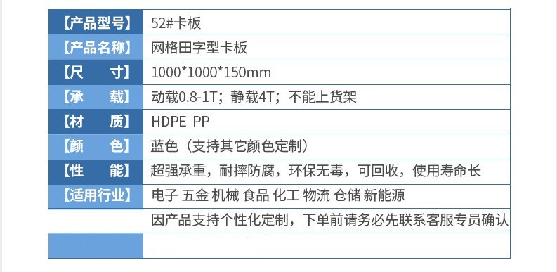 本店產(chǎn)品常規(guī)庫(kù)存為全新料藍(lán)色塑料托盤,周轉(zhuǎn)箱,周轉(zhuǎn)籮,化工桶,中空板材及部分高性價(jià)比黑色一次性出貨產(chǎn)品。如需要其他顏色請(qǐng)聯(lián)系客服對(duì)接處理。因產(chǎn)品規(guī)格較多,未能全部上至店鋪,如店中沒有您需要的規(guī)格尺寸也請(qǐng)聯(lián)系客服。希望能解決您的問題,我們竭誠(chéng)為您服務(wù)!!!