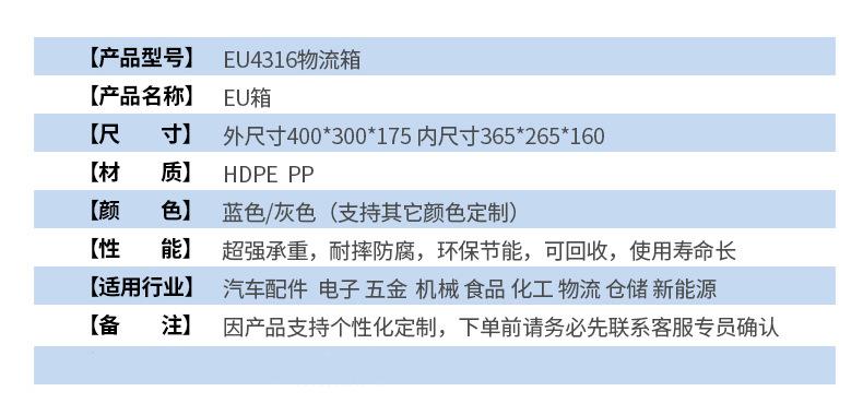 當前位置:首頁 > 產品展示 > 周轉箱 > EU箱
